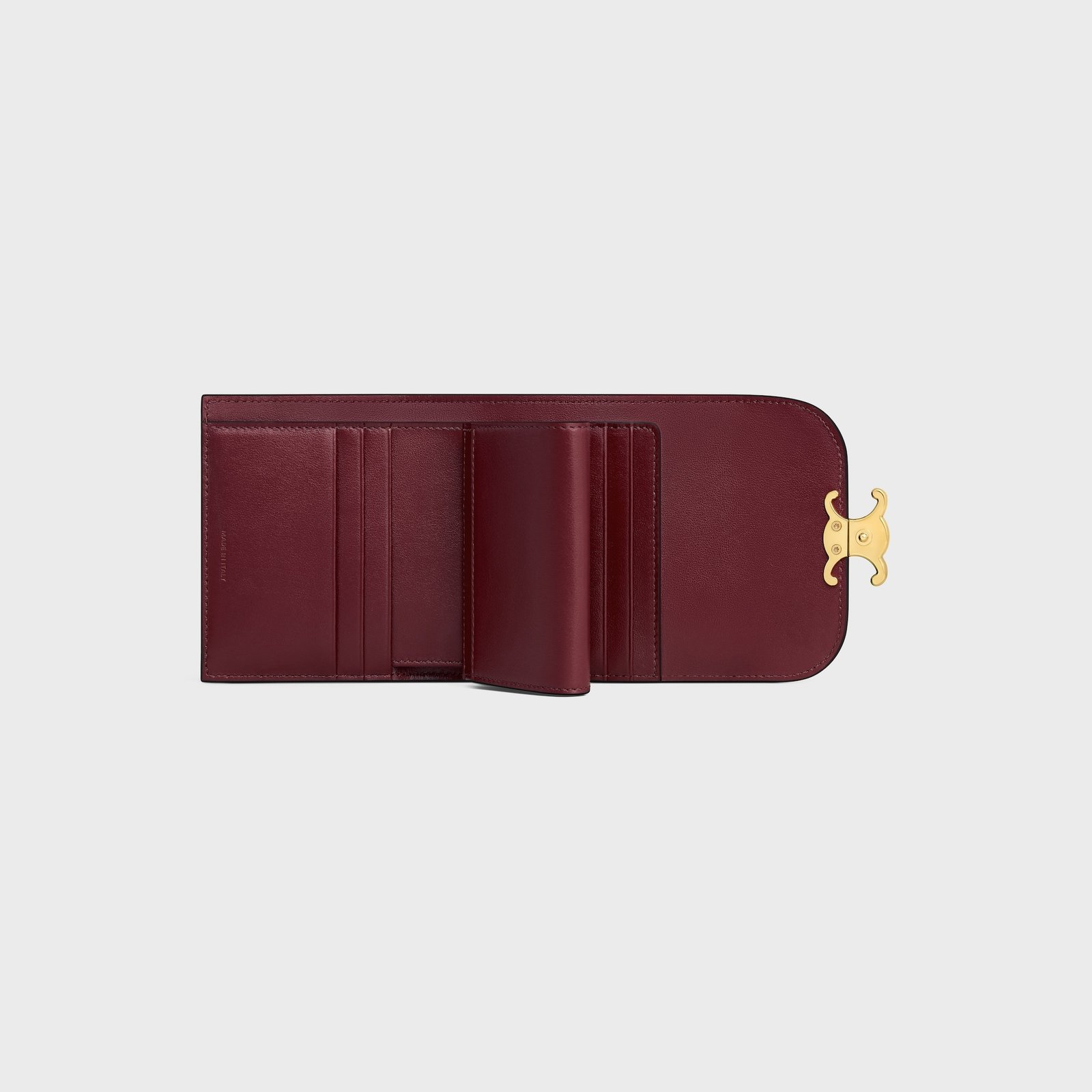 Be the first to review “SMALL FLAP WALLER TRIOMPHE IN SHINY CALFSKIN LIGHT BURGUNDY” Cancel reply