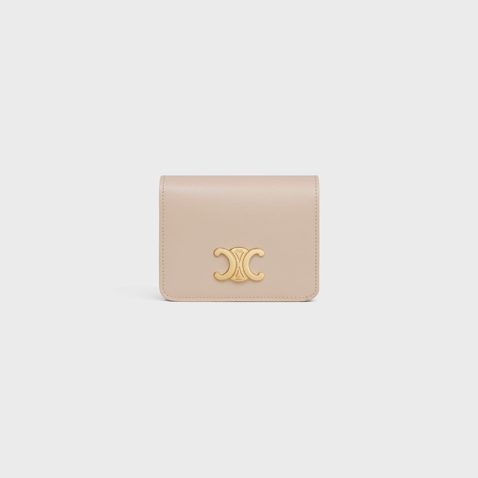 COMPACT WALLET WITH COIN TRIOMPHE IN SHINY CALFSKIN LIGHT CLAY
